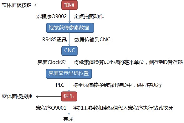 臺達(dá)該解決方案的創(chuàng)新之處在于,首次在CNC解決方案中接入機(jī)器視覺系統(tǒng)。通過RS485通訊,實(shí)現(xiàn)臺達(dá)CNC控制器NC311A-MS-A和機(jī)器視覺系統(tǒng)DMV1000系列之間的數(shù)據(jù)交互。再利用客制化開發(fā)的程序和界面功能,可幫助客戶實(shí)現(xiàn)智能自動加工的要求??蛻舨恍枰M(jìn)行編程和對刀的工作,更換工件后,只需要按下系統(tǒng)操作面板中的“拍照”和“鉆孔”功能按鍵,就可以完成加工的所有操作。臺達(dá)該創(chuàng)新解決方案較大程度地降低了終端客戶的人工和時間成本,易用性高,優(yōu)勢突出。
