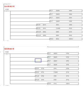 通過速度功能塊,定位功能塊進行定位控制進給的應(yīng)用。PLC數(shù)據(jù)運算程序如圖16。