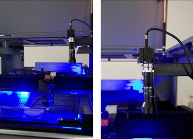 為確保檢測精度,所以考慮采用一個相機各拍攝一個MARK的方法。本系統(tǒng)中采用2個相機和4個光源的架構(gòu)。