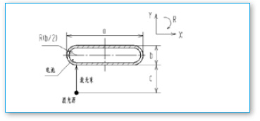 電池形狀由寬度a、厚度b決定,焊接時要求尺寸c保持恒定,即在激光束固定焦距上進行焊接。電池裝在X、Y工作臺上,可由R軸帶動旋轉。另包括送料軸。根據(jù)以上要求和條件,確定鋰電池外殼激光焊接過程如下: