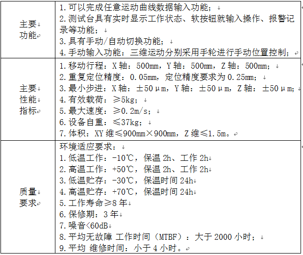 整體其有效提升重量為150kg,提升速度為0.25m/s。定位精度高于0.05mm。