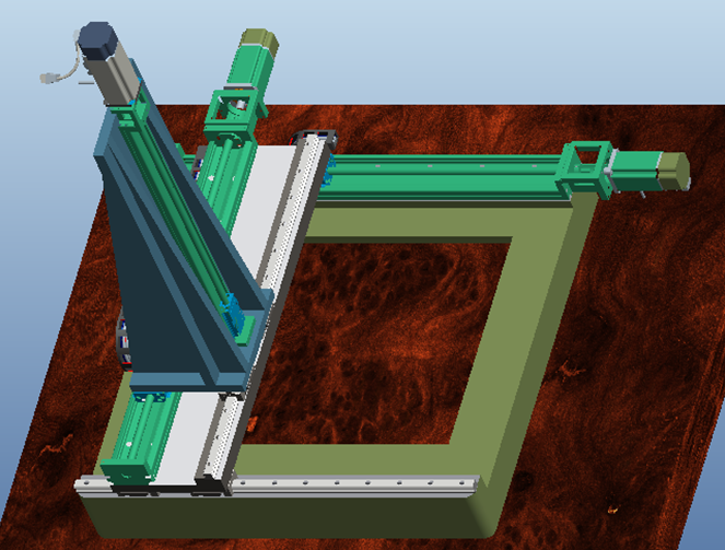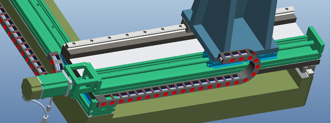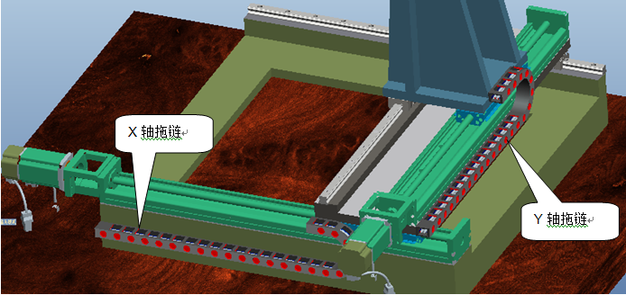 為了提高Y軸的抗變形,減小單軸運動帶來的打擾度,X軸結(jié)構(gòu)上采用KK模組和直線導軌的雙軸設計,其能確保Y軸結(jié)構(gòu)件的穩(wěn)定,同時X軸底座采用整體鑄鋁加工而成,有助于提高產(chǎn)品整體設計的剛度,確保使用過程中結(jié)構(gòu)穩(wěn)定可靠。具體結(jié)構(gòu)如下: