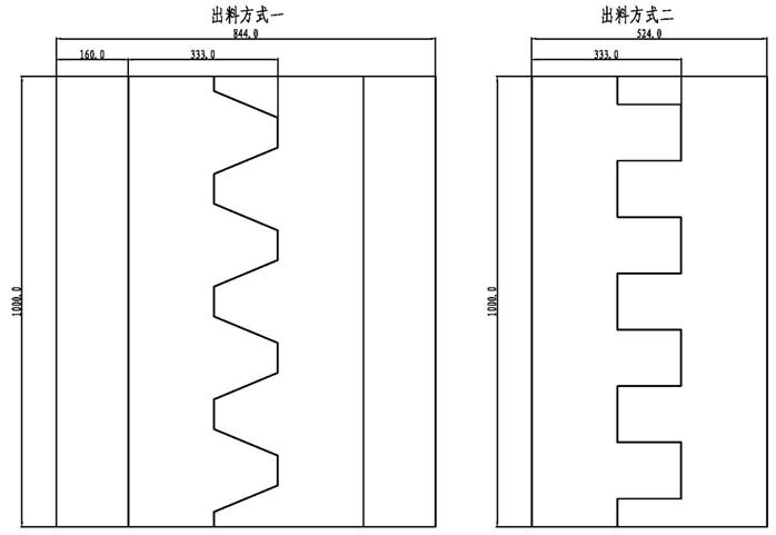 生產(chǎn)線可以實現(xiàn)下圖所示兩種不同滾切出料方式的分揀、碼垛工序。