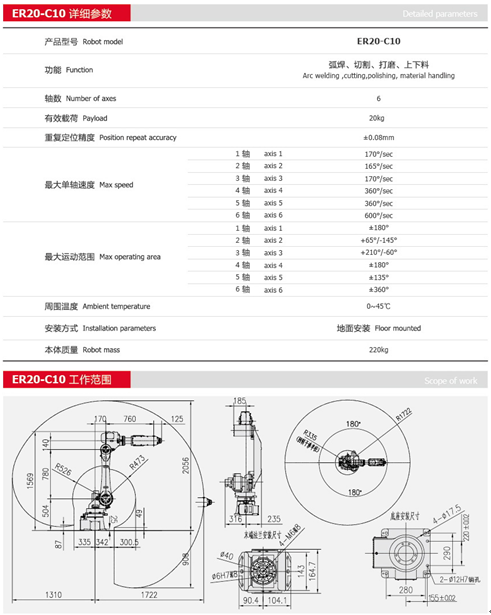 ER20-C10工業(yè)機器人結(jié)構(gòu)緊湊,運動速度快,具有較高的重復(fù)定位精度和軌跡跟蹤精度,采用總線架構(gòu),擴展應(yīng)用方便,適用于機床上下料、激光切割、打磨、碼垛等行業(yè)。