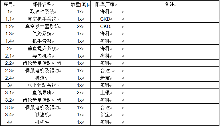傳動(dòng)系統(tǒng)采用齒輪齒條傳動(dòng),并配置臺(tái)達(dá)帶剎車的伺服電機(jī)(確保斷電后還能保證抓手部件下滑)以及新寶減速器。齒輪齒條運(yùn)動(dòng)平穩(wěn)可靠,并且性價(jià)比極高,此設(shè)計(jì)可以有效減輕甲方的采購成品。
