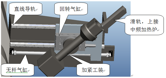 3) 工件通過無桿氣缸推動到上料輥鍛機械手;