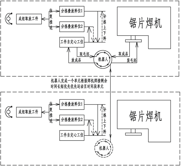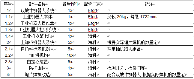 固定單元:鋸片焊機(jī) + 上卸料機(jī)器人系統(tǒng) 數(shù)量五套(由實(shí)際鋸片焊機(jī)數(shù)量決定)