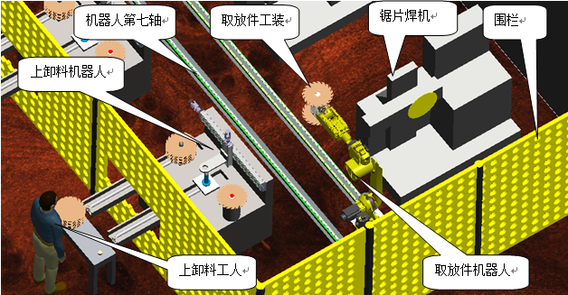 機(jī)器人主要實(shí)現(xiàn)鋸片焊接的上下料。