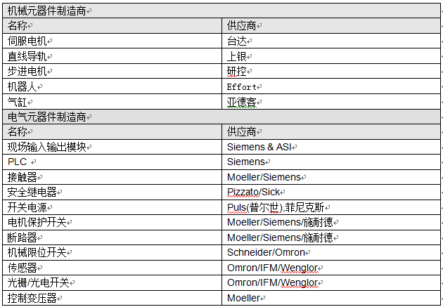 主要設(shè)備清單
