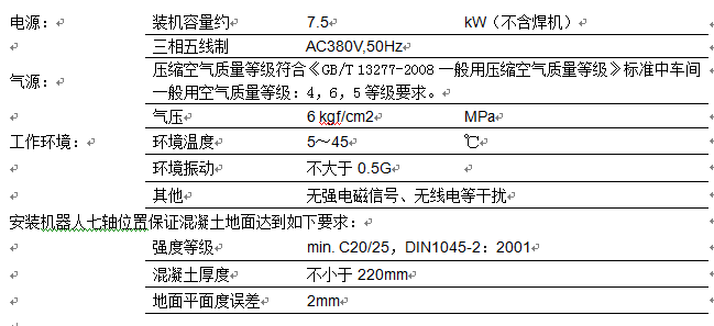 ? 對機(jī)器人系統(tǒng)的安裝調(diào)試提供必要的水、電、壓縮空氣、叉車行車等的使用支持。