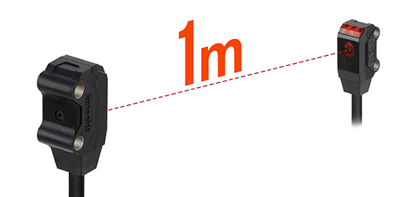 緊湊型傳感器能夠檢測距離 1 m 的物品。 (對射型)